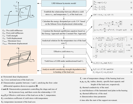 Kalpakidis et al. proposed an analytical model that considers the strength degradation caused by heat generation of the LRB during reciprocal deformation [9], which takes into account the changes in the characteristic strength of the LRB due to the instantaneous temperature of the lead core, Figure 3 illustrates the establishment process of the degradation model.